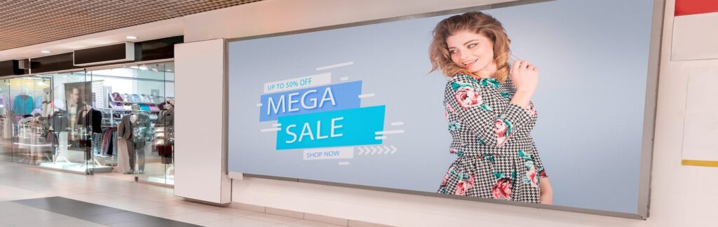 Vinilo MONOMÉRICO adhesivo, especialmente indicado para aplicaciones sobre superficies planas, es el más estándar y económico, disponible con trasera blanca o trasera oscura, perfecto para aplicar en promociones de corta duración sobre superficies planas. Ancho máximo imprimible 150 cm. Medidas superiores por medio de paneles superpuestos 1,5 cm en las uniones.